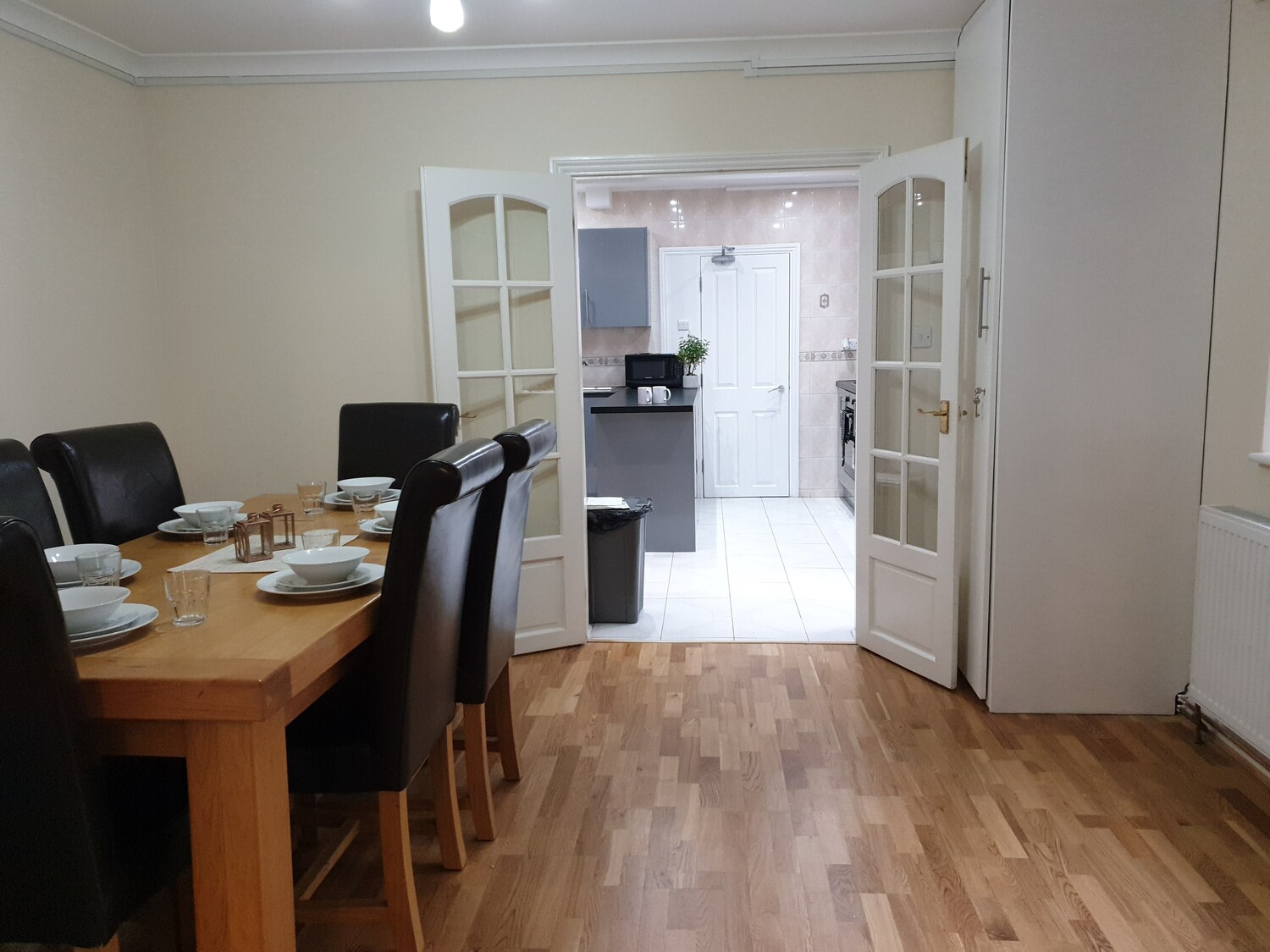 The house has 6 well sized, well-furnished double bedrooms. Each has been decorated in a neutral colour and includes the following (all interiors are brand new): Double beds with comfy mattresses, double wardrobe, chest of drawers, bedside cabinet and black out blinds. Some bedrooms have sofas!