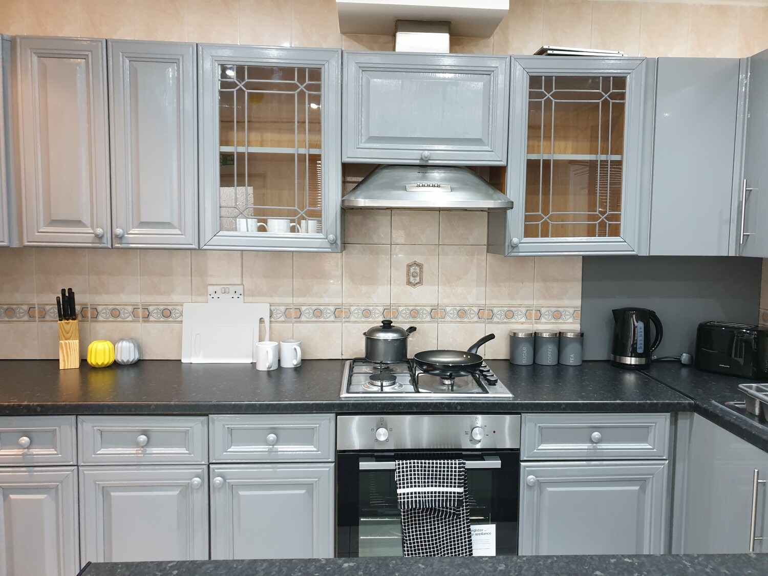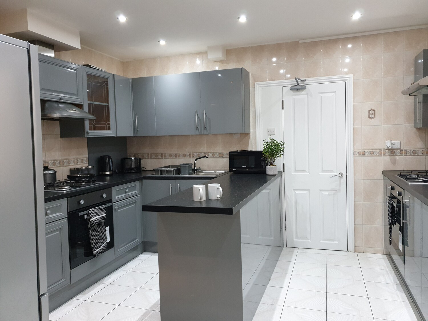 The house also has a newly fitted luxurious spacious kitchen with plenty of storage space. The kitchen also includes: all crockery, cooking utensils, microwave, toaster, kettle, 2 gas hobs, two kitchen sinks, 2 fridge/freezers. There is also a separate utility room with a 9kg washing machine.