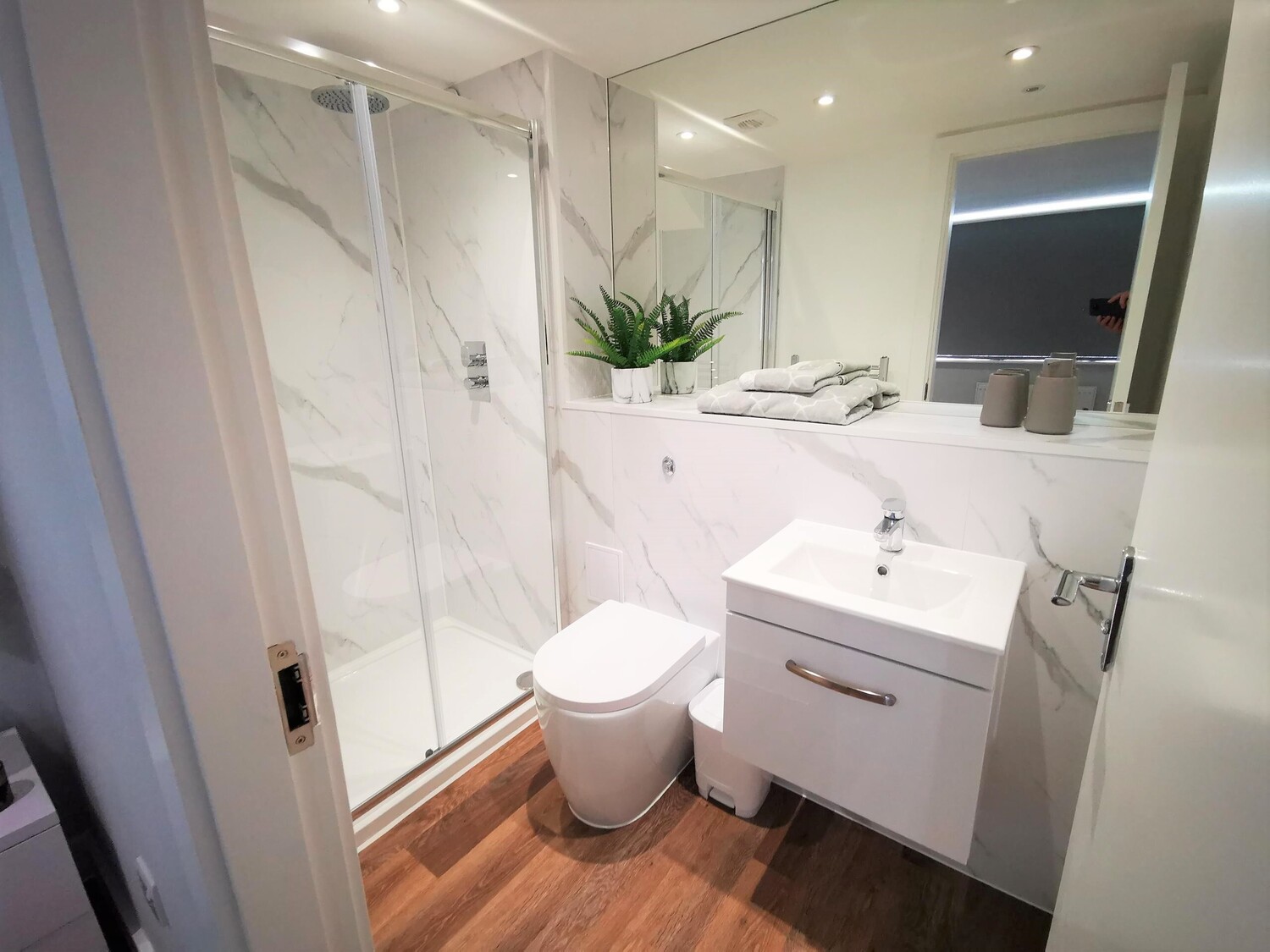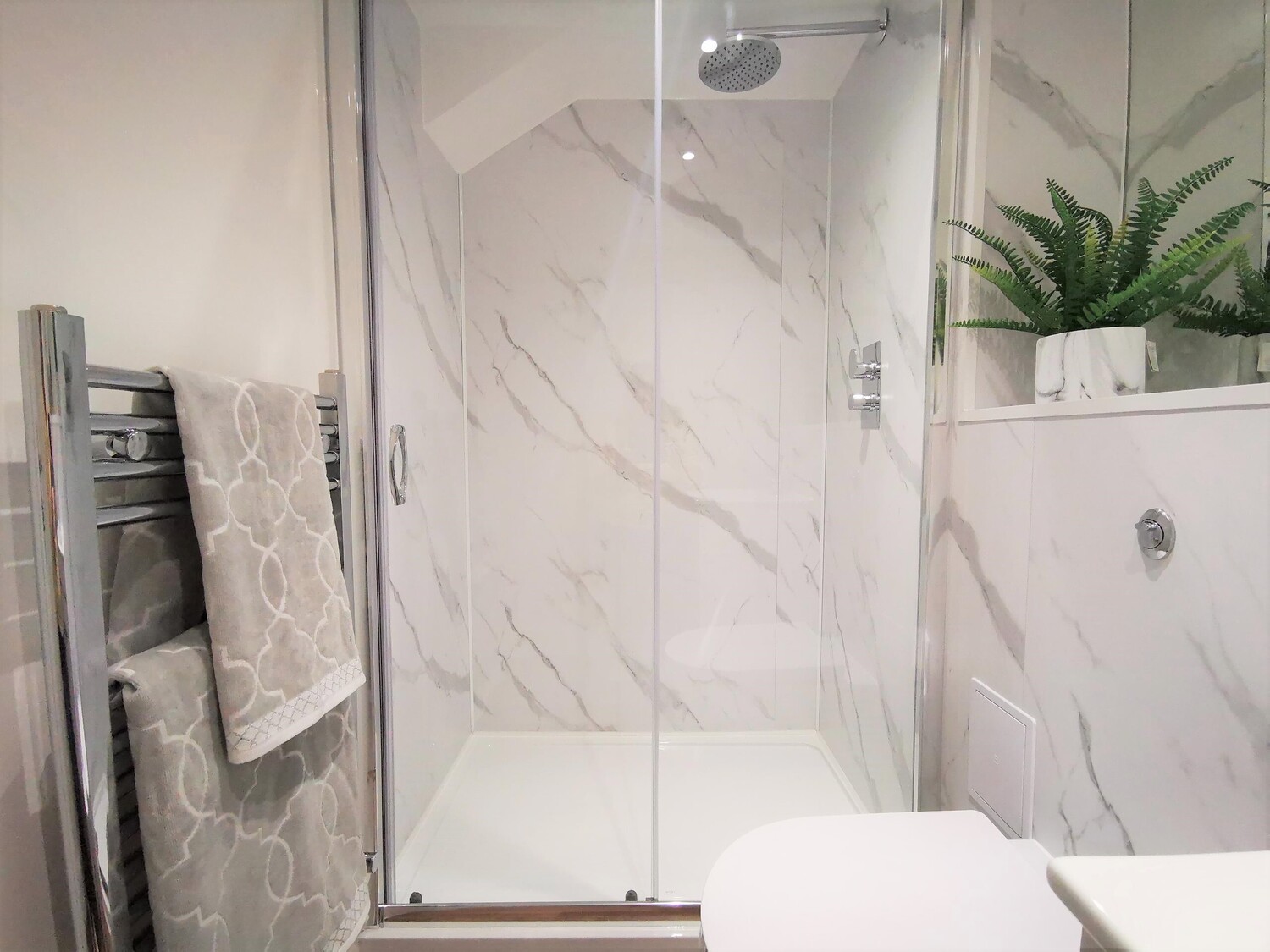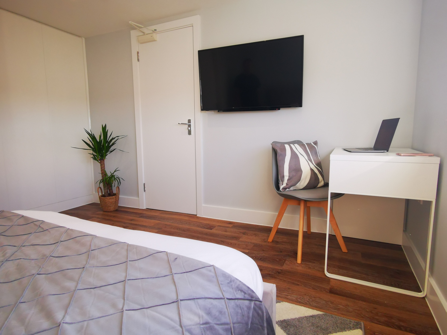 Uniquely designed by our interior designer. Quality luxurious furnishings, large furnished bedroom, wardrobe, desk with separate furnished lounge and TV. Huge ensuite with power-shower and luxurious bathroom fittings. Shared luxury kitchen with all modern appliances, 55" TV and balcony with stunning views across the countryside. All bills included.