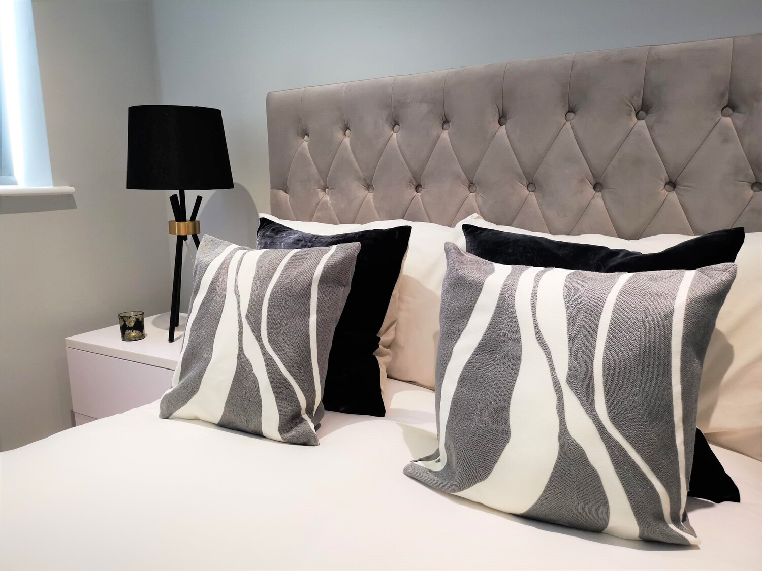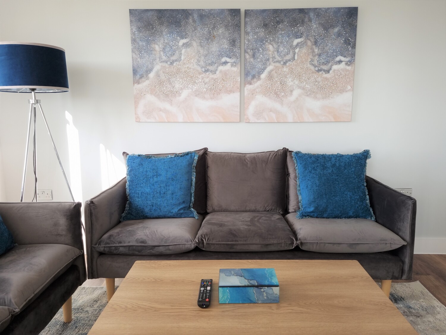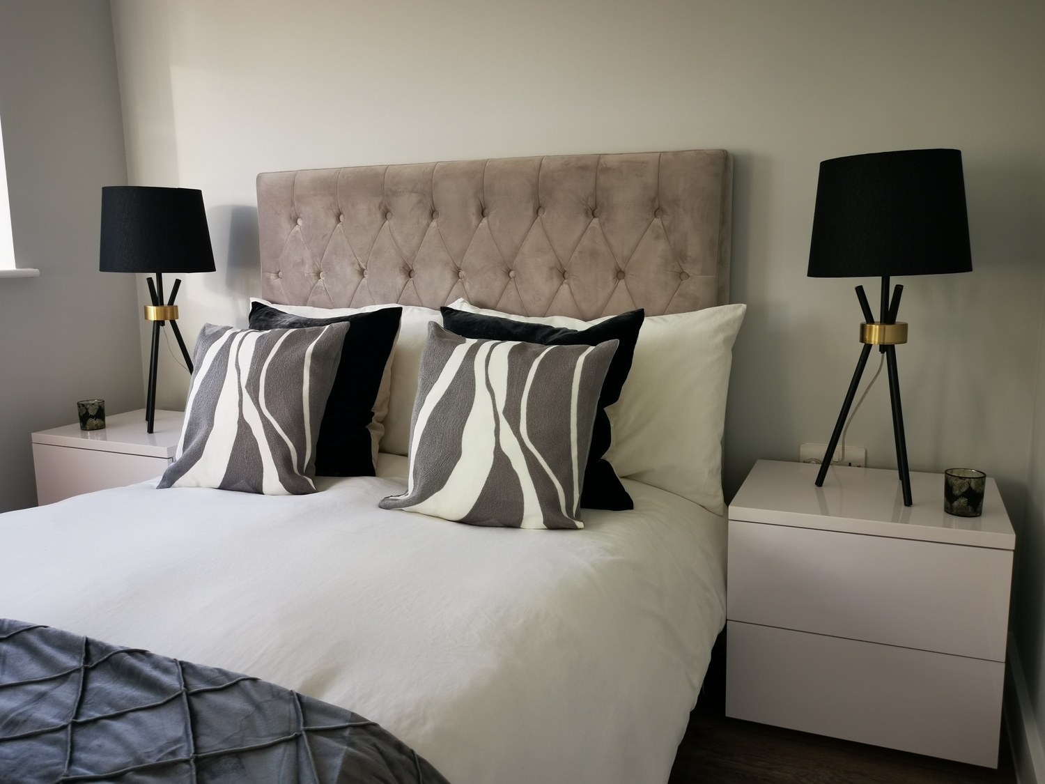 Uniquely designed by our interior designer. Quality luxurious furnishings, large furnished bedroom, wardrobe, desk with separate furnished lounge and TV. Huge ensuite with power-shower and luxurious bathroom fittings. Shared luxury kitchen with all modern appliances, 55" TV and balcony with stunning views across the countryside. All bills included.